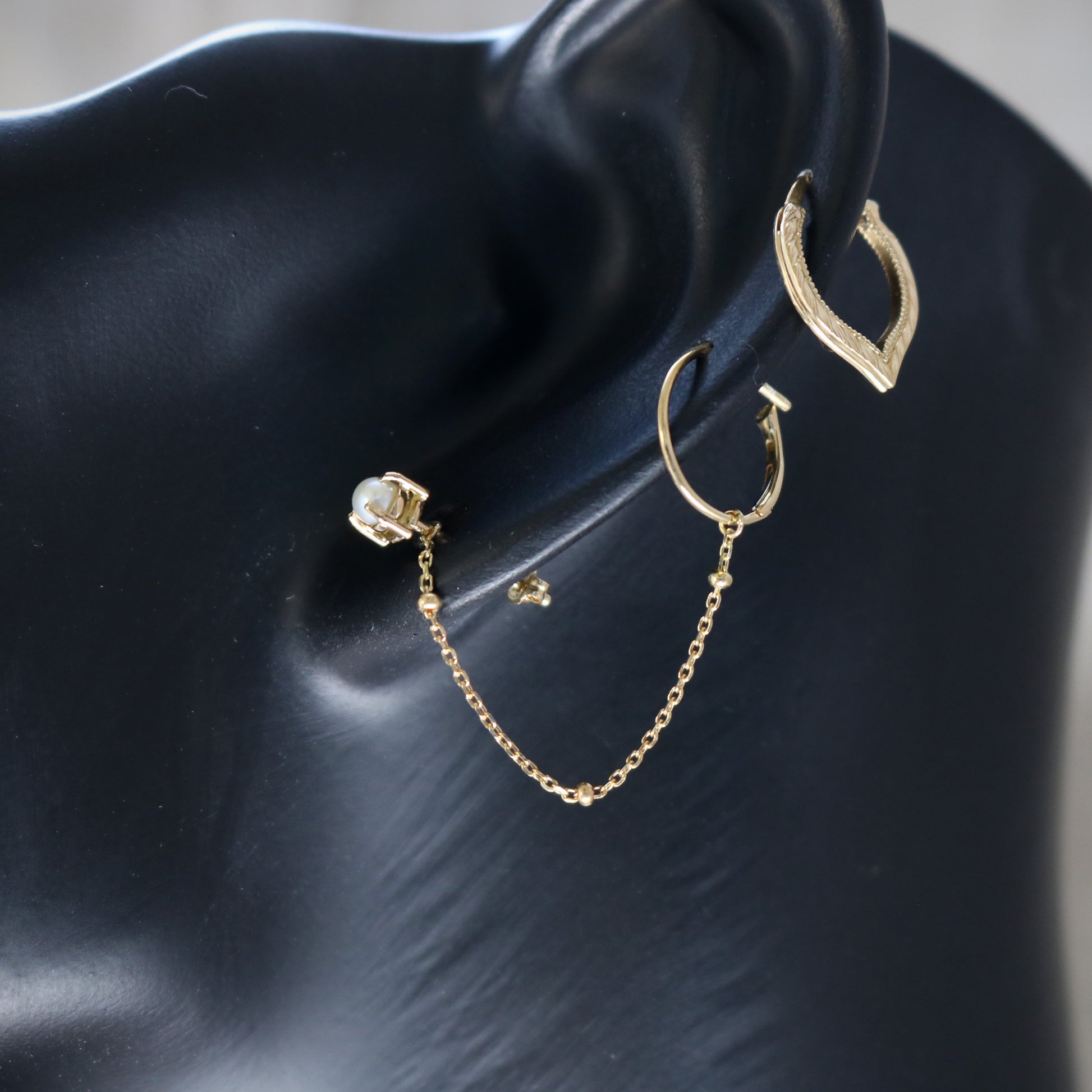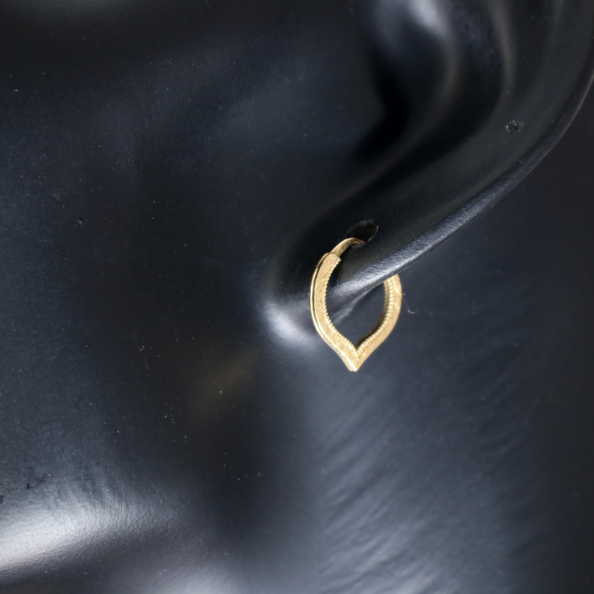 葉のモチーフを彫りいれた華奢なシングルイアリング。