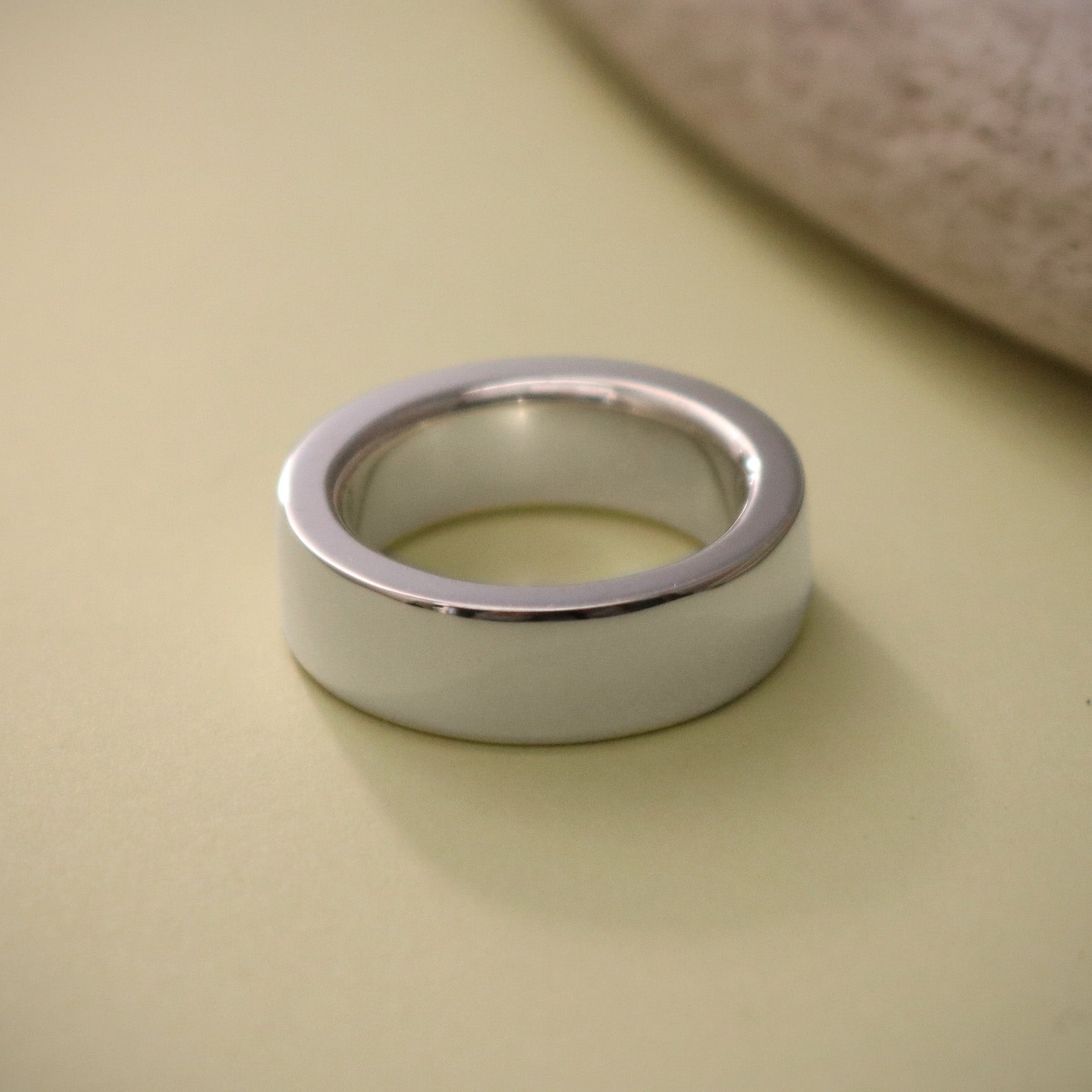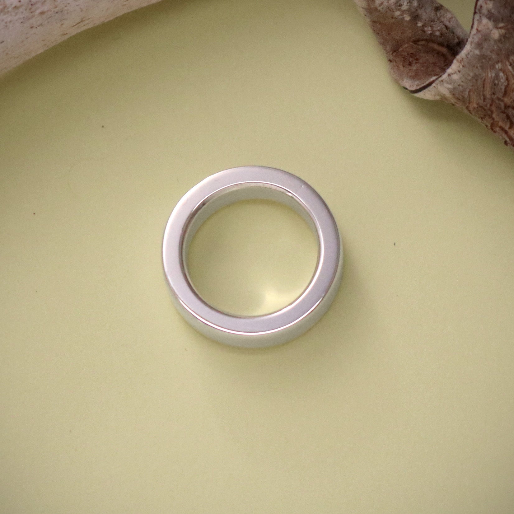 少し丸みのあるシンプルな平打ちタイプのリング。