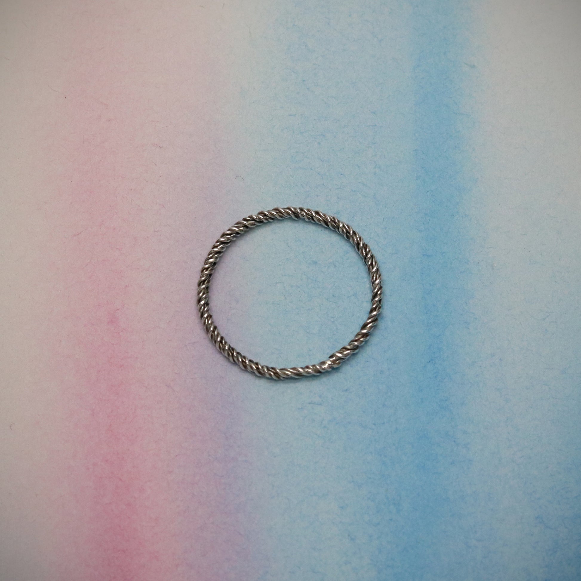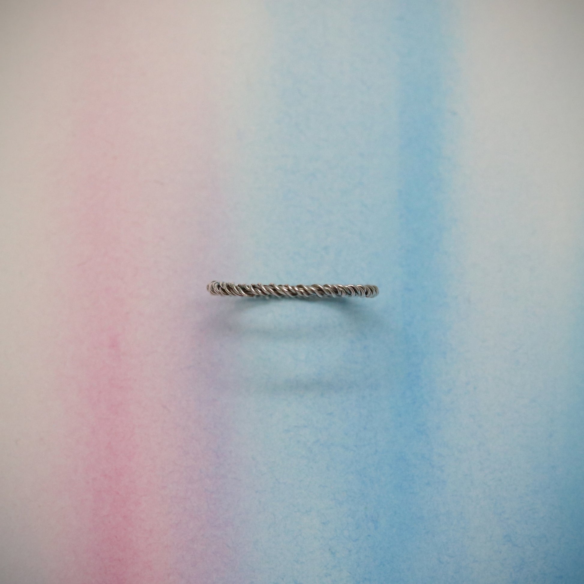 約0.3㎜のワイヤー4本で巻いたシルバーのリング。