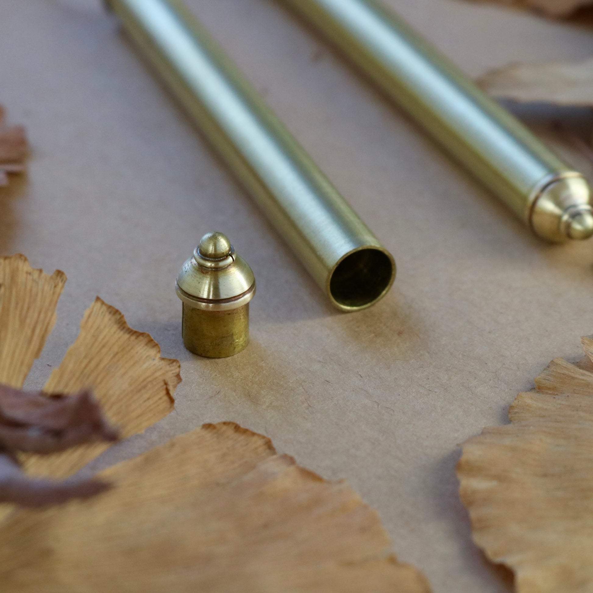 美しいフォルムの筒型真鍮ピアス。