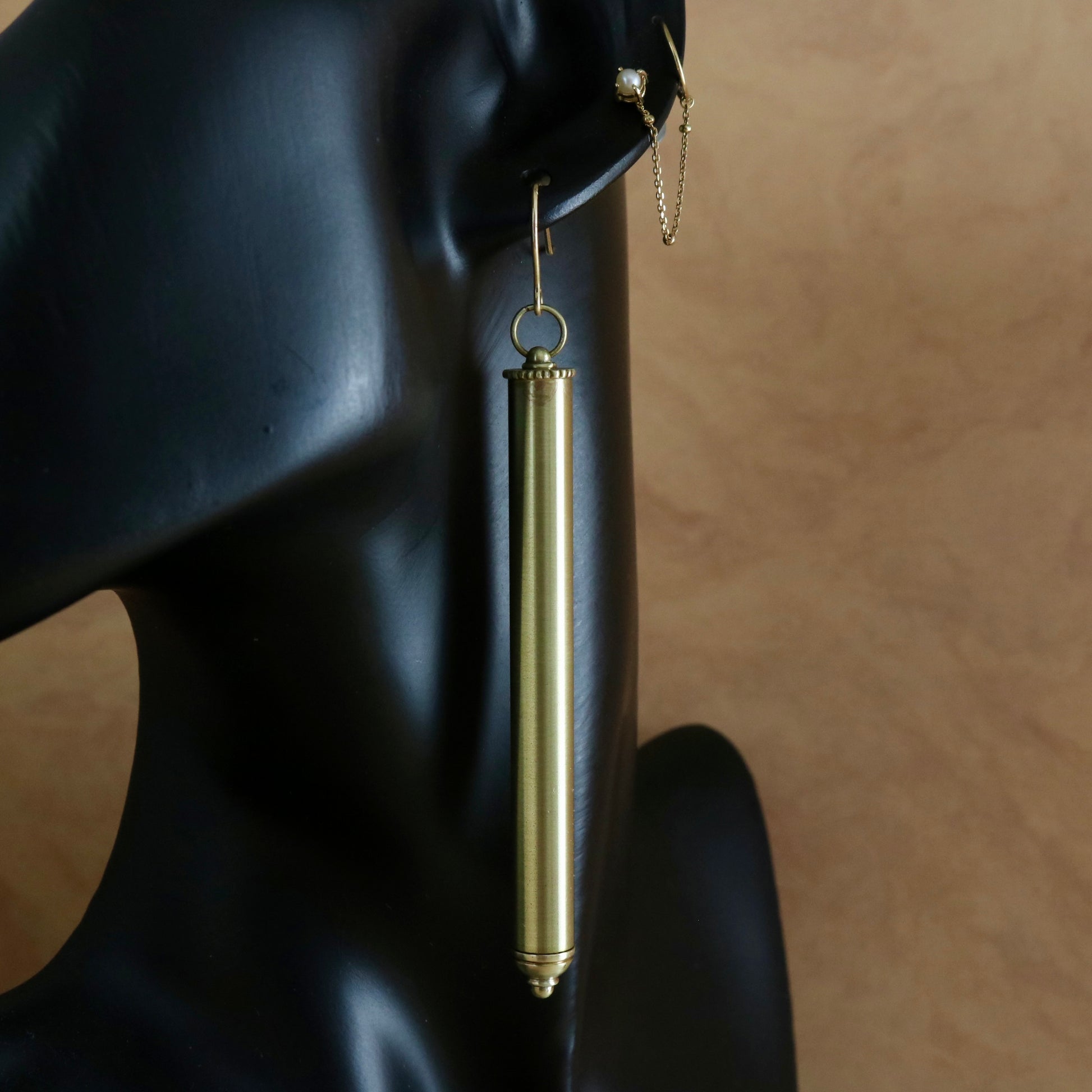 Brass/K18. Cylinder Earrings.